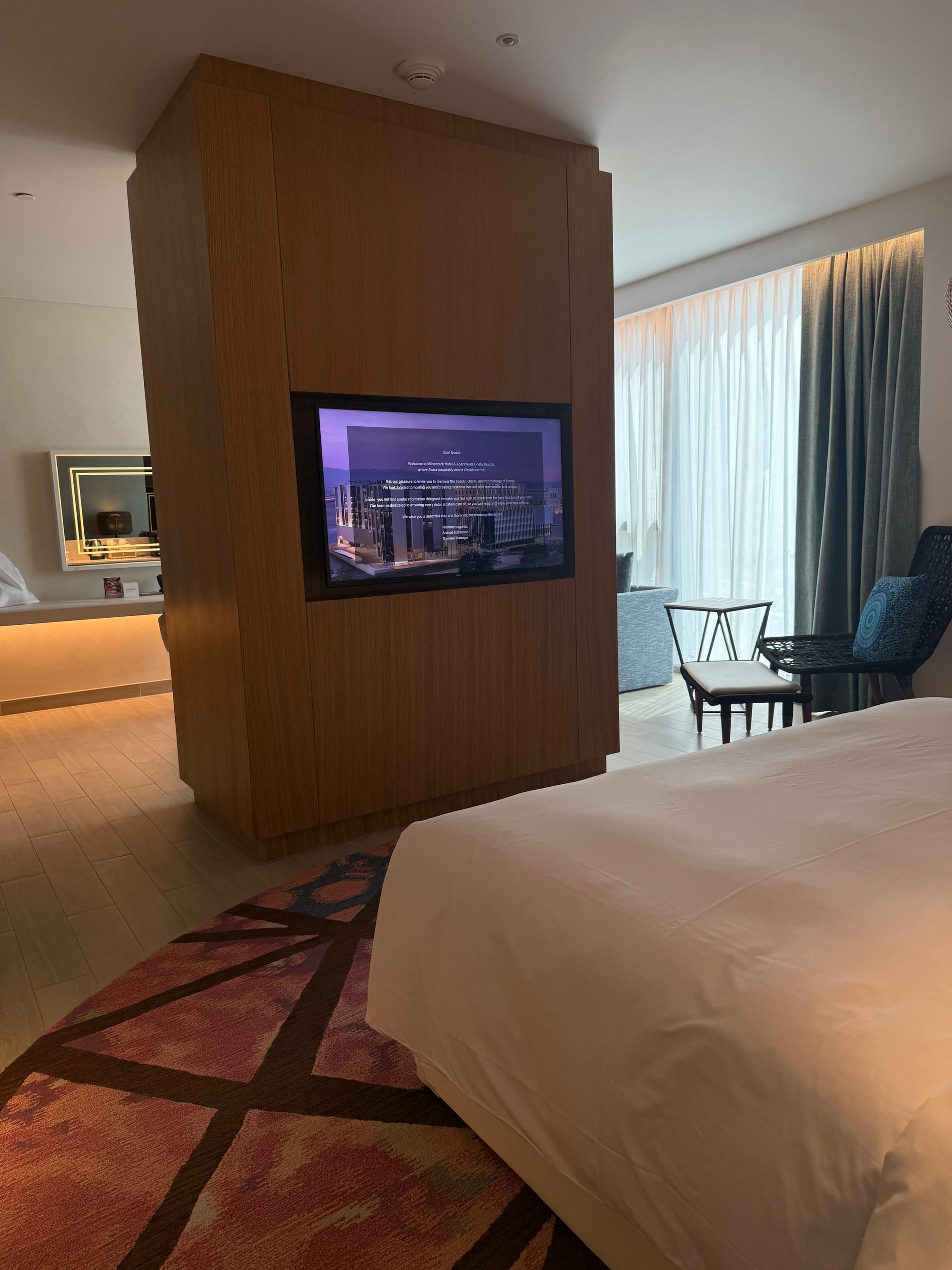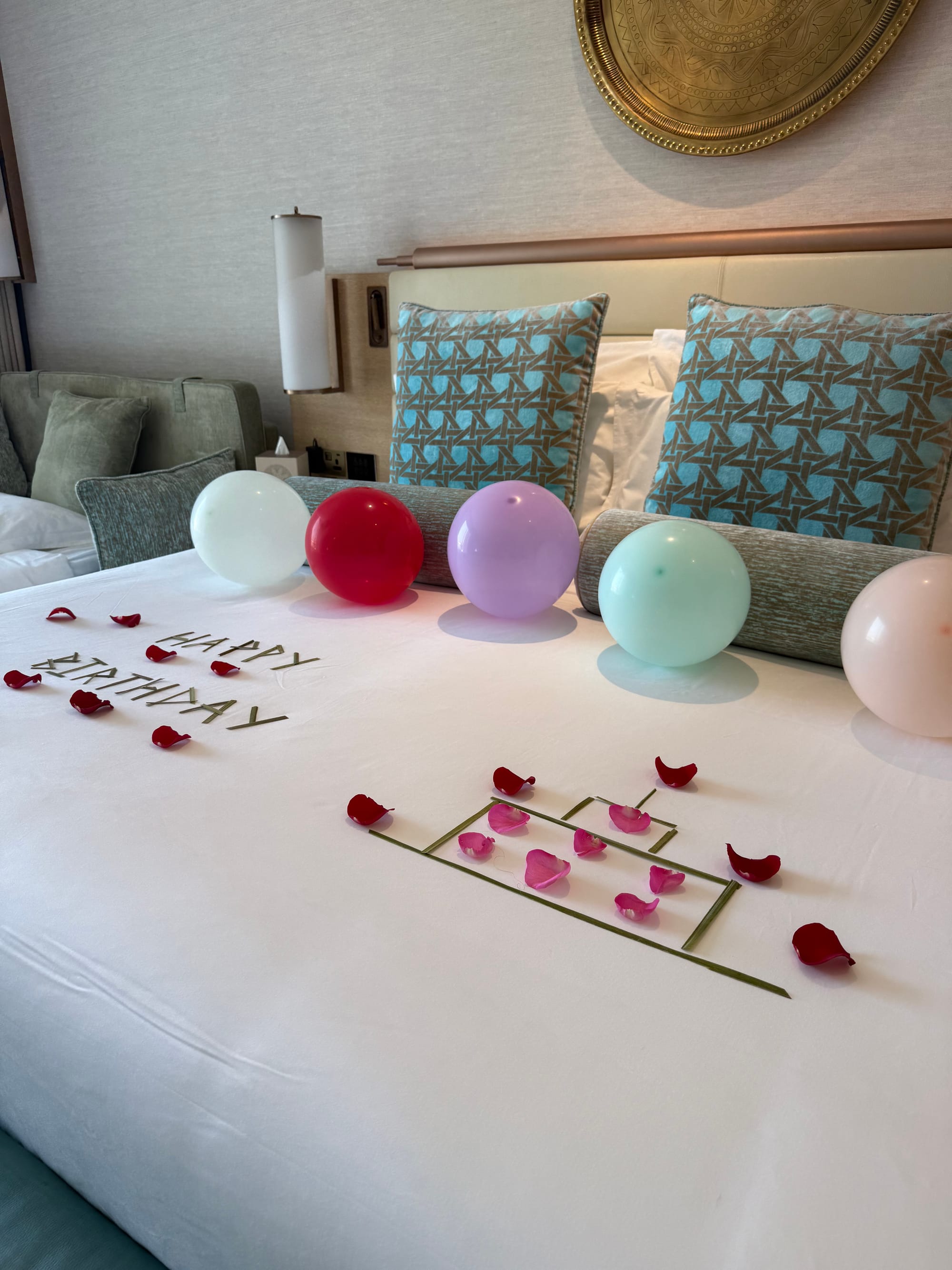 Literie parfaite, produits Amouage (parfumerie de luxe omanaise) pour la salle de bain, et un accueil personnalisé pour mon anniversaire : pâtisseries, gâteau et décorations 💛 Une délicate attention qui reflète la qualité du service.