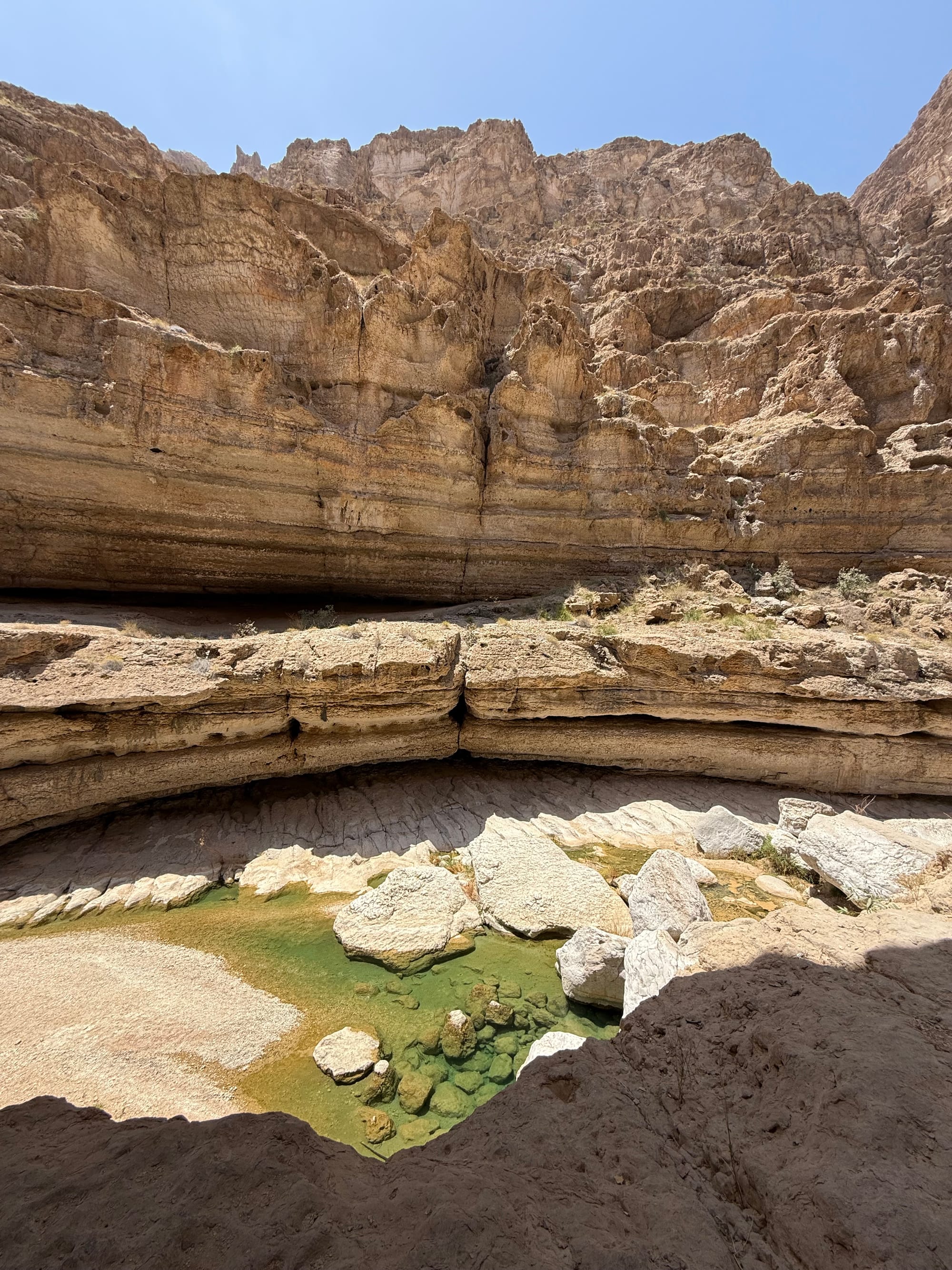 Un décor à couper le souffle : falaises abruptes, palmeraies avec des magnifiques contrastes de lumière. Le Wadi Shab est une aventure qui combine tout ce que j’aime à Oman : paysages spectaculaires, challenge physique, moments de partage et émerveillement.
