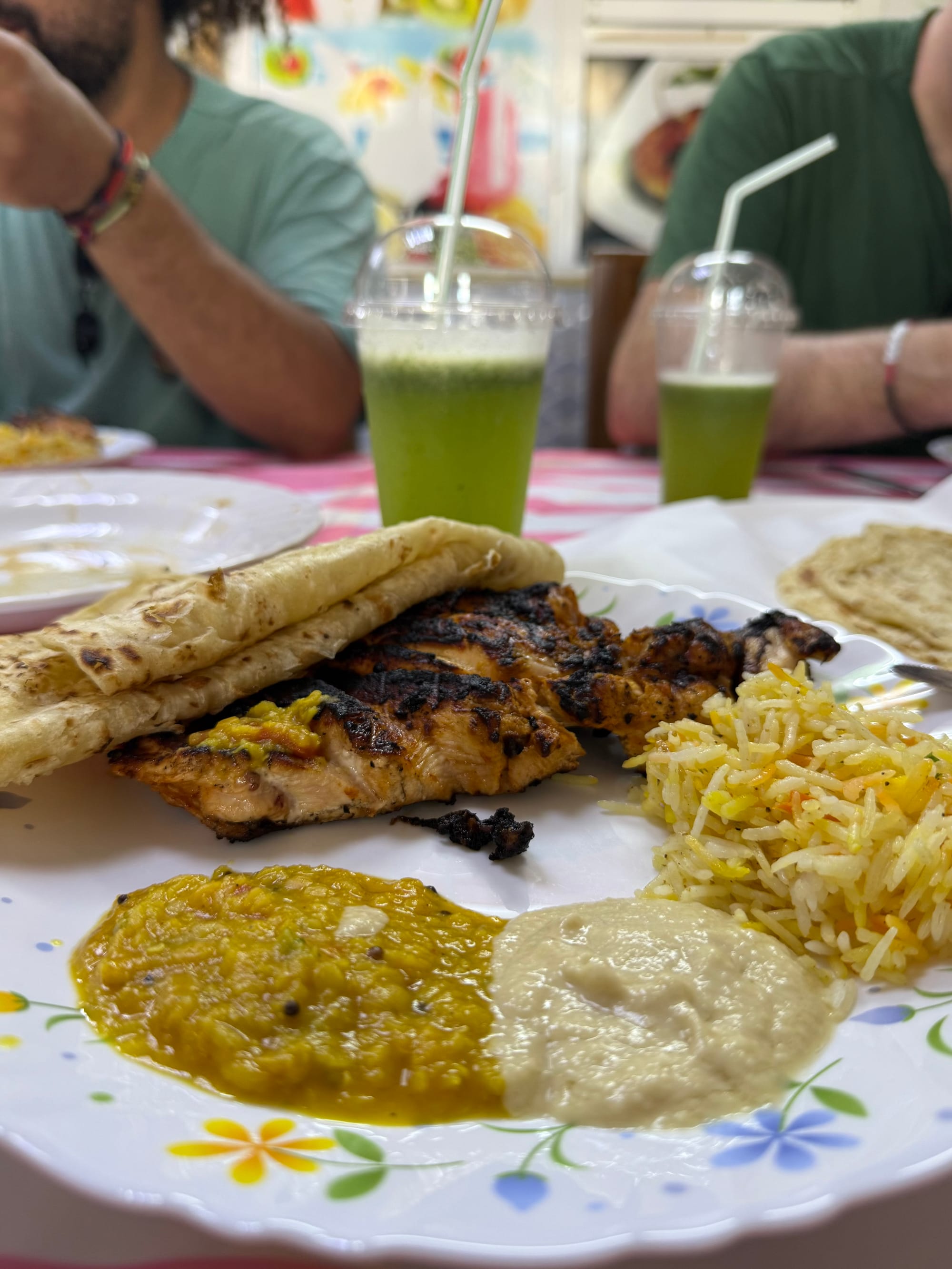 🚩 Dhal curry, houmous, omani paratha et poulet grillé au barbecue