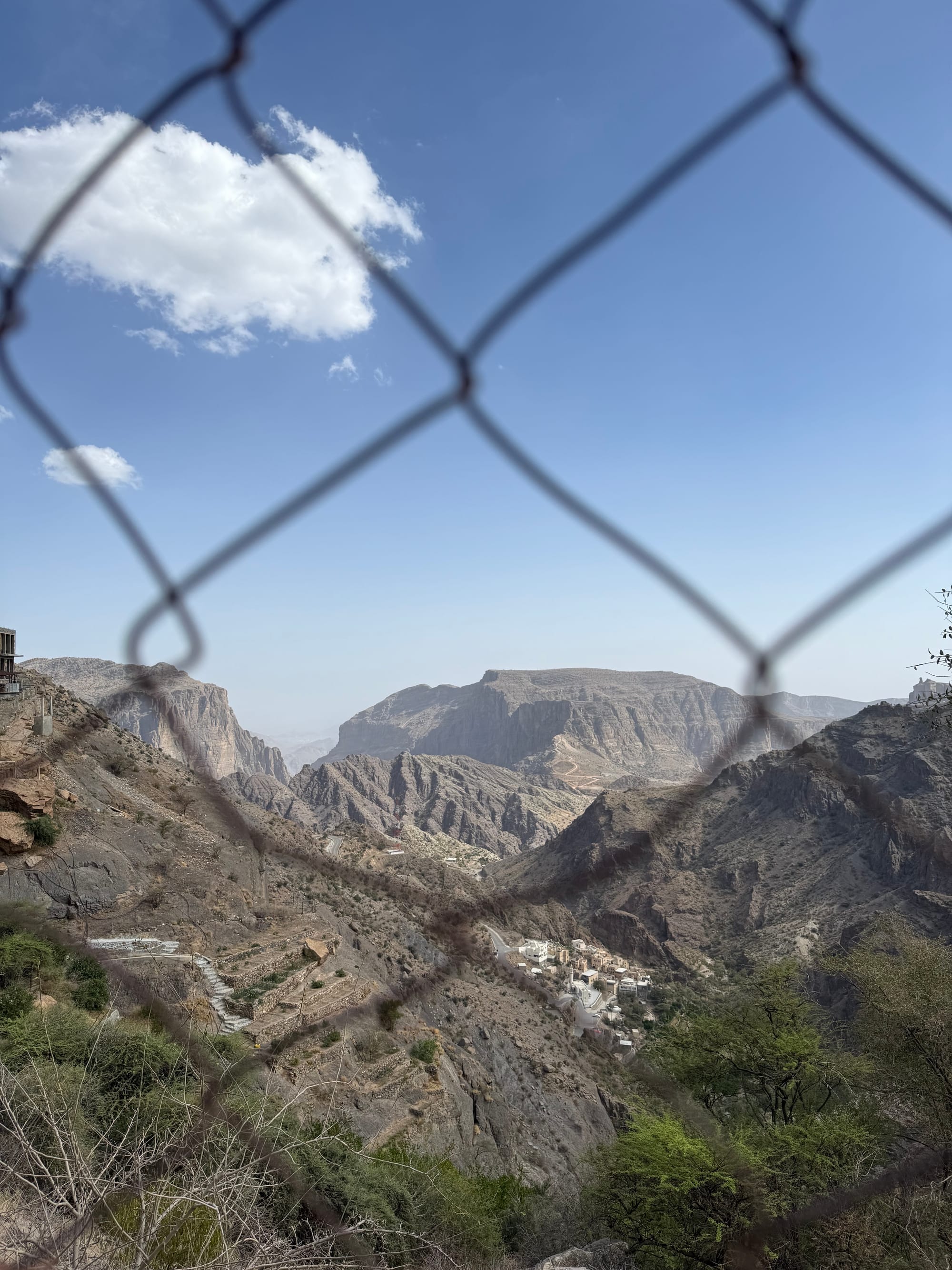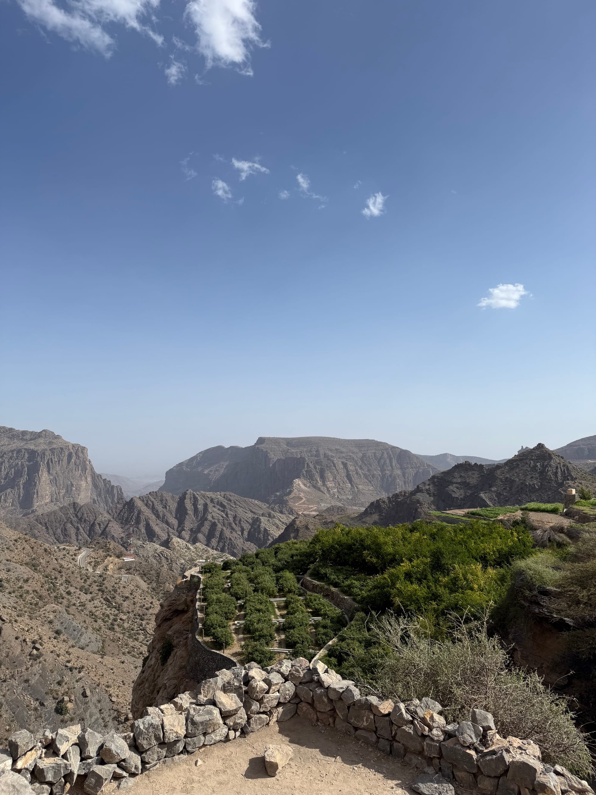 🚩 Randonnée de près de 2h au Jebel Akhdar, la “montagne verte”, à travers des panoramas à couper le souffle : découverte des falaj (systèmes d’irrigation traditionnels classés à l’UNESCO), et culture en terrasses (roses, grenadiers, abricotiers bien que ce n'était pas la saison)