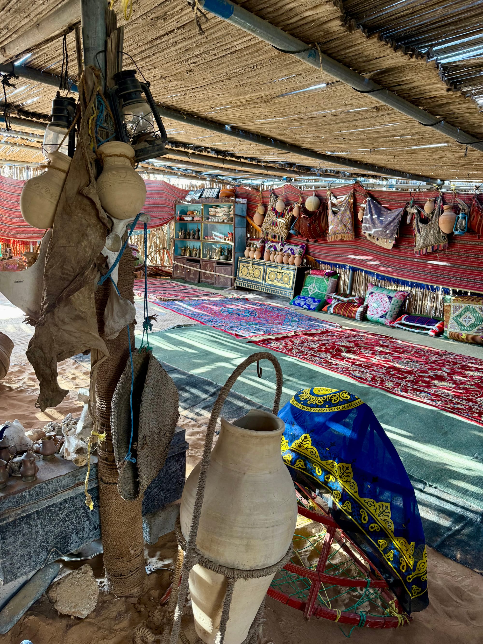 🚩 En route pour le désert de Wahiba Sands : exploration des dunes dorées, puis pause café-dattes omanais dans un camp bédouin