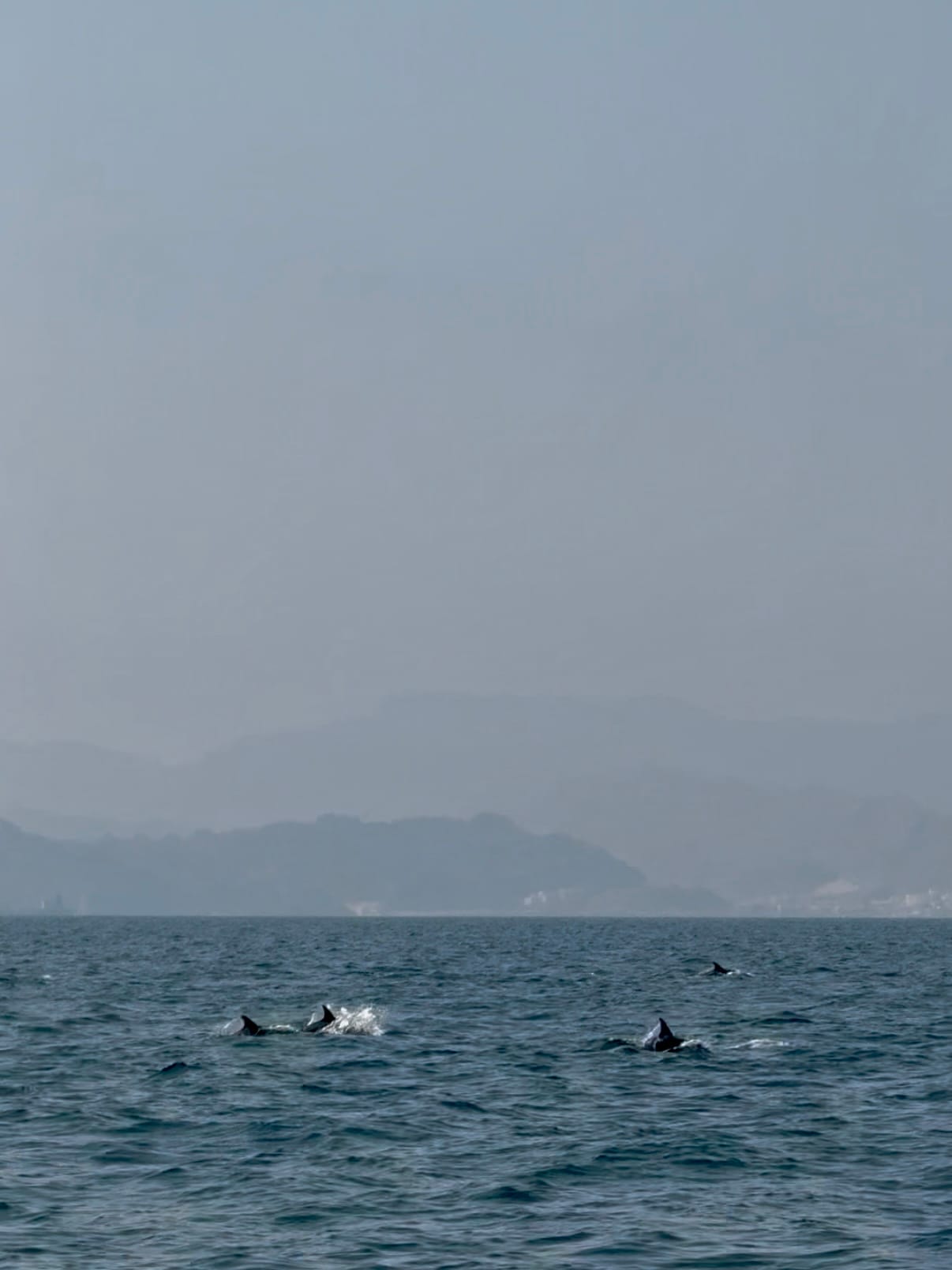 Les vues à couper le souffle sur le littoral et les superbes montagnes d'Al Hajar pendant la traversée. Le spectacle offert par les dizaines de dauphins à quelques mètres de notre bateau. Le snorkeling dans une crique, seuls au monde, dans une magnifique crique naturelle de la baie.